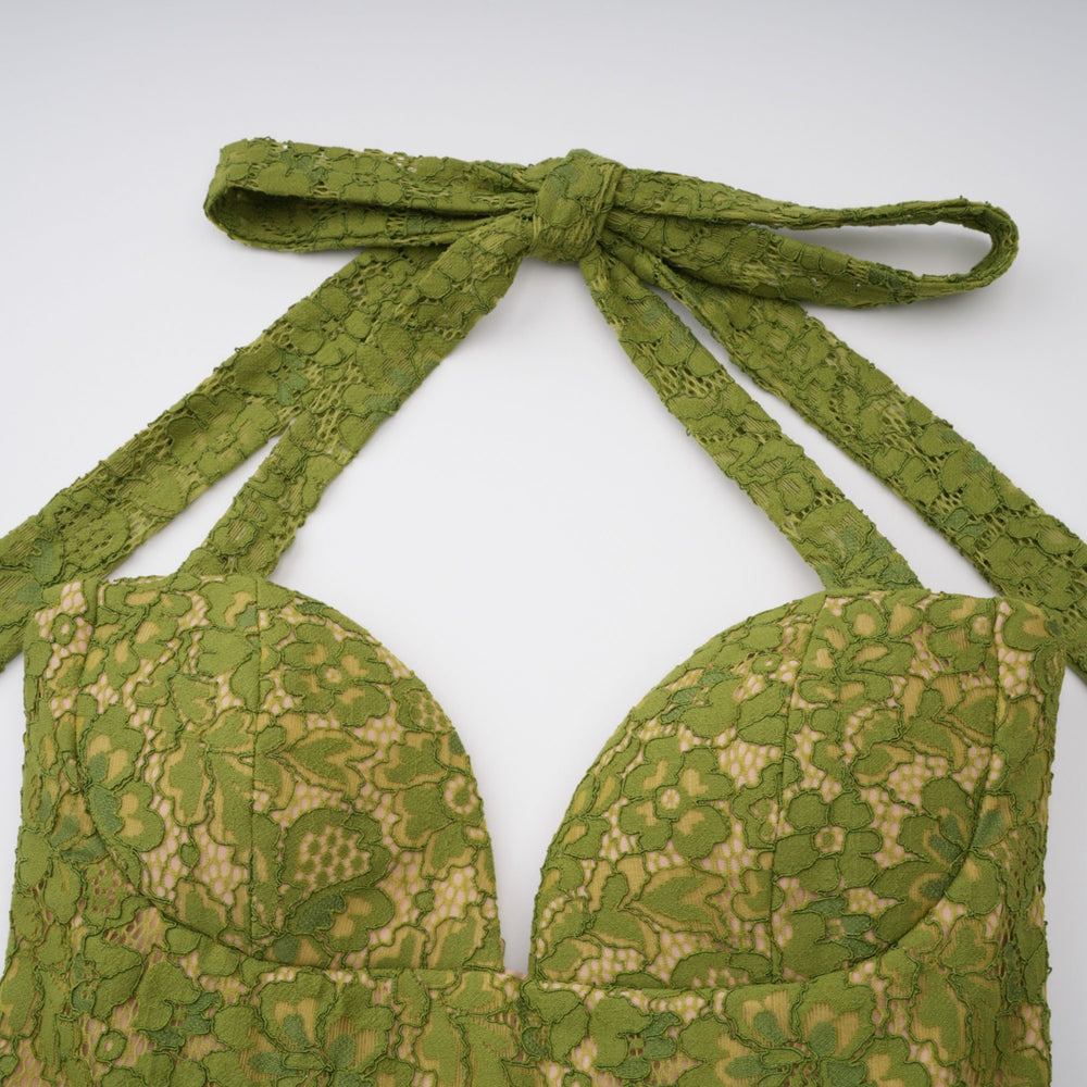 Make a striking statement in the Penny Emerald Lace Fishbone Pleated Corset Gown, a sophisticated maxi dress designed for those who appreciate refined elegance. This emerald green gown showcases a structured floral lace corset bodice with fishbone boning that provides exceptional support and shaping. The halterneck design and sleeveless cut highlight the shoulders, while the fitted waistline flows into a beautifully pleated skirt that extends to maxi length. A rear lace-up fastening allows for a customized fit and adds vintage-inspired charm. Made from durable 100% Terylene fiber, this gown is ideal for formal events and special occasions. True to size—refer to our size chart for the perfect fit.