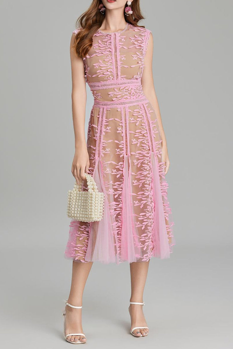 Make a graceful statement in this phoenix 3D embroidered lace mesh midi dress in blush pink. The dimensional phoenix embroidery adds artistic flair and visual depth, while the flowing midi length offers timeless elegance and versatility. The sheer mesh construction creates a sophisticated, layered aesthetic that works beautifully for weddings, cocktail events, or upscale gatherings. This dress celebrates your style with refined femininity and modern charm. Whether you're dressing up for a special occasion or elevating your everyday wardrobe, this piece empowers you to feel poised and beautiful.